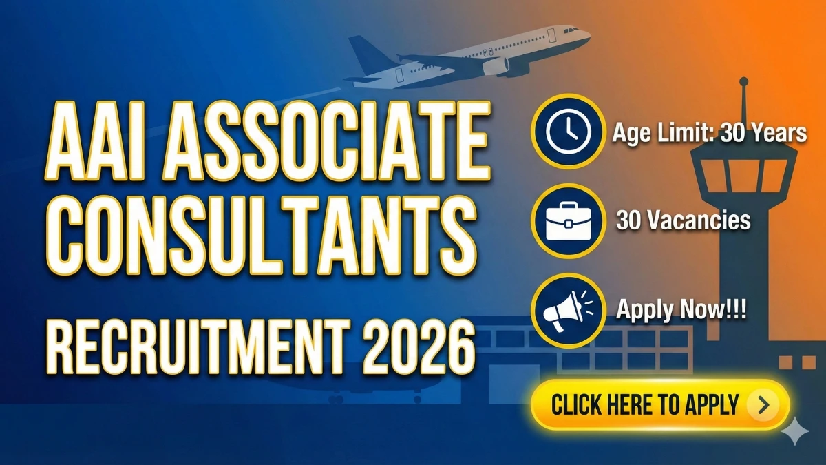 Airports Authority of India has officially released the AAI Recruitment 2026 notification for 30 Posts including Associate Consultants (Engineering-Electrical), and Associate Consultants (Engineering-Civil) at aai.aero. Candidates seeking government jobs can now apply for AAI Recruitment 2026 through the online application process. The AAI Online Application Form 2026 is available from 29.01.2026 to 08.02.2026 on the official website. This article covers complete details about AAI Vacancy 2026 including educational qualification, age limit, application fee, salary structure, selection process, exam pattern, and how to apply online. Interested candidates must carefully read the official AAI Notification 2026 before starting the registration process. Find all important information about AAI Jobs 2026, eligibility criteria, important dates, and direct application link below.