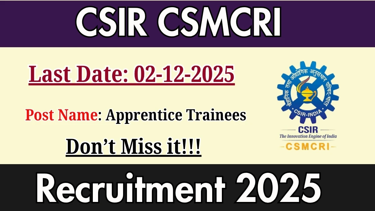 This article provides complete details about the CSIR CSMCRI Apprentice Trainees Recruitment 2025, including educational qualifications, age limit, selection process, salary details, and application procedure. Candidates can also find the direct link to download the official notification PDF and apply online at the end of this post.
