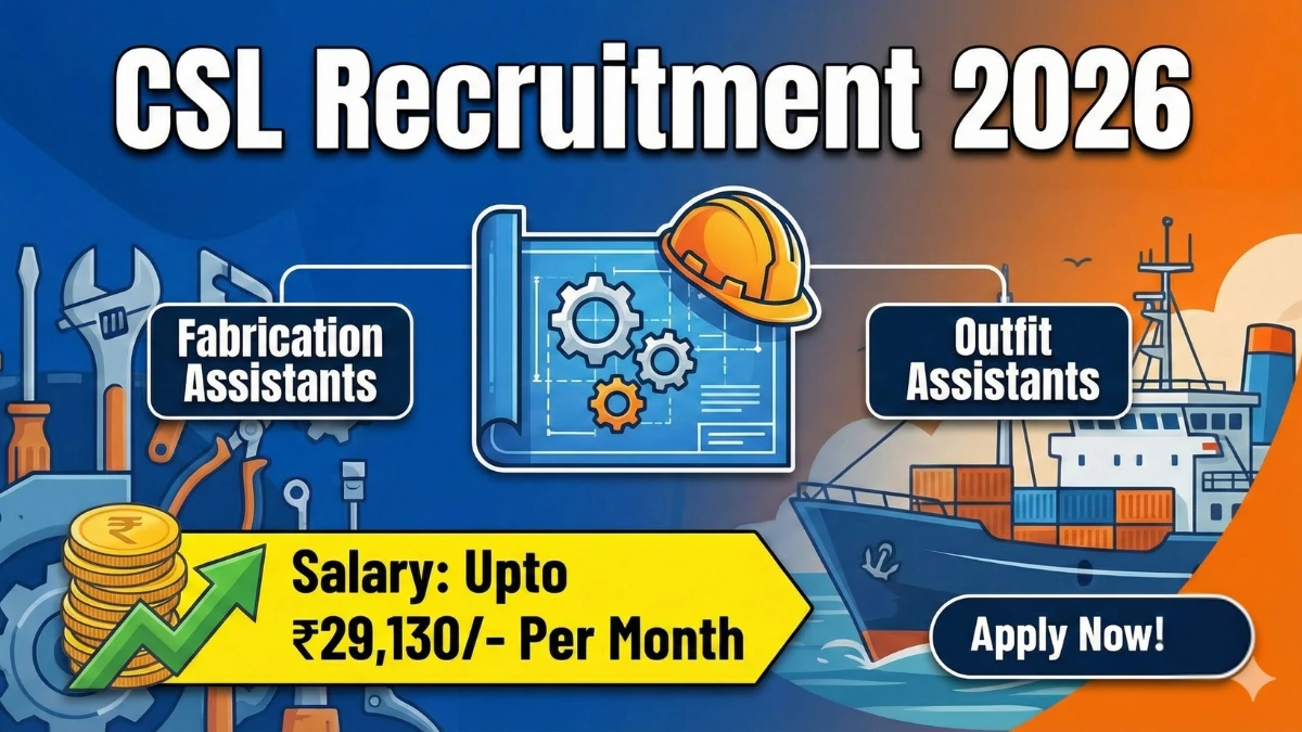 Cochin Shipyard Limited has officially released the CSL Recruitment 2026 notification for 260 Posts including Sheet Metal Worker, Welder, Fitter at cochinshipyard.in. Candidates seeking government jobs can now apply for CSL Recruitment 2026 through the online application process. The CSL Online Application Form 2026 is available from 21.01.2026 to 07.02.2026 on the official website. This article covers complete details about CSL Vacancy 2026 including educational qualification, age limit, application fee, salary structure, selection process, exam pattern, and how to apply online. Interested candidates must carefully read the official CSL Notification 2026 before starting the registration process. Find all important information about CSL Jobs 2026, eligibility criteria, important dates, and direct application link below.