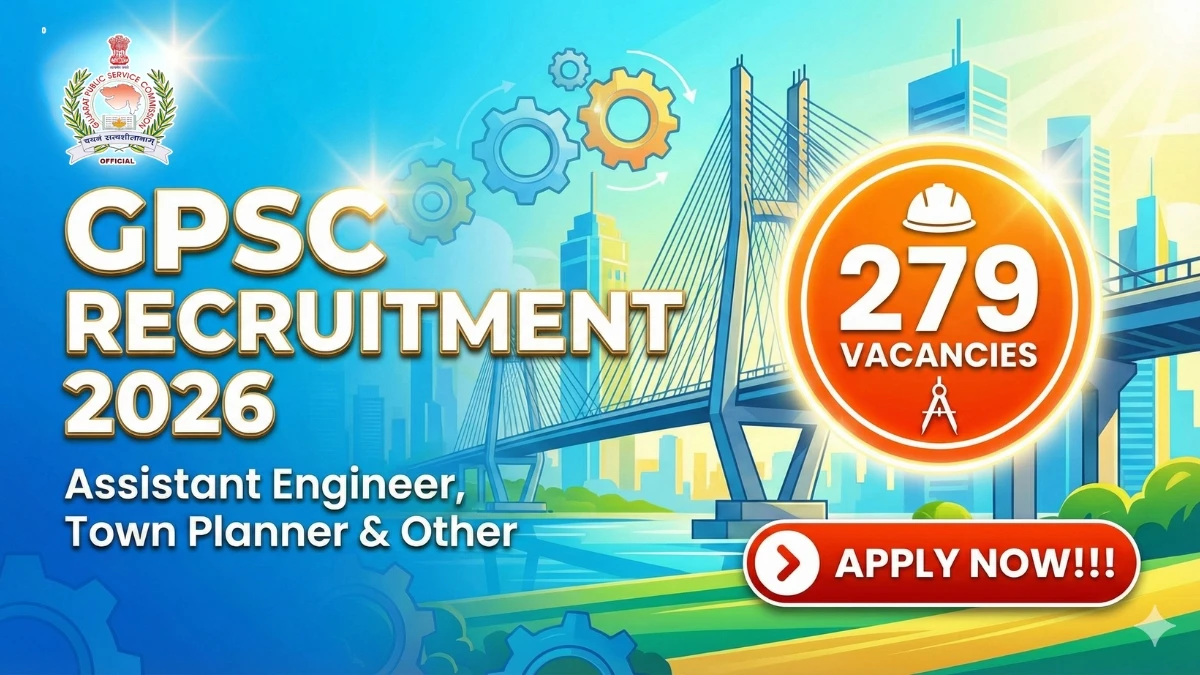 Gujarat Public Service Commission has officially released the GPSC Recruitment 2026 notification for 279 Posts including Assistant Engineer, Town Planner, and Other Posts at gpsc.gujarat.gov.in. Candidates seeking government jobs can now apply for GPSC Recruitment 2026 through the online application process. The GPSC Online Application Form 2026 is available from 31 January 2026 to 16 February 2026 on the official website. This article covers complete details about GPSC Vacancy 2026 including educational qualification, age limit, application fee, salary structure, selection process, exam pattern, and how to apply online. Interested candidates must carefully read the official GPSC Notification 2026 before starting the registration process. Find all important information about GPSC Jobs 2026, eligibility criteria, important dates, and direct application link below.