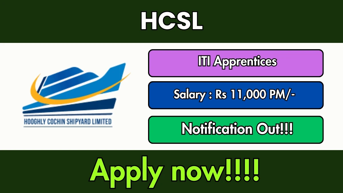 Hooghly Cochin Shipyard Limited has officially released the HCSL Recruitment 2025 notification for 5 Posts including Electrician, Painter (General)/ Painter (Marine), Mechanic Diesel, and Pipe Fitter/Plumber at cochinshipyard.in. Candidates seeking government jobs can now apply for HCSL Recruitment 2025 through the online application process. The HCSL Online Application Form 2025 is available from 19/12/2025 to 08/01/2026 on the official website. This article covers complete details about HCSL Vacancy 2025 including educational qualification, age limit, application fee, salary structure, selection process, exam pattern, and how to apply online. Interested candidates must carefully read the official HCSL Notification 2025 before starting the registration process. Find all important information about HCSL Jobs 2025, eligibility criteria, important dates, and direct application link below.