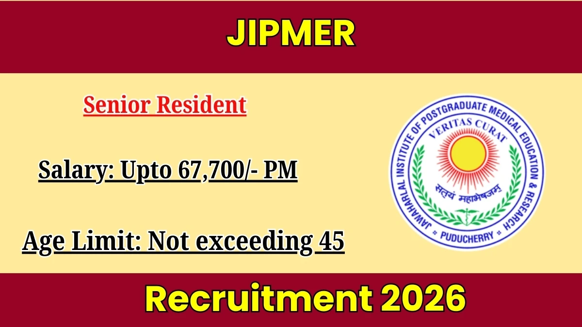 Jawaharlal Institute of Postgraduate Medical Education and Research has officially released the JIPMER Recruitment 2026 notification for 110 Posts including Senior Resident at jipmer.edu.in. Candidates seeking government jobs can now apply for JIPMER Recruitment 2026 through the online application process. The JIPMER Online Application Form 2026 is available from 14.01.2026 to 03.02.2026 on the official website. This article covers complete details about JIPMER Vacancy 2026 including educational qualification, age limit, application fee, salary structure, selection process, exam pattern, and how to apply online. Interested candidates must carefully read the official JIPMER Notification 2026 before starting the registration process. Find all important information about JIPMER Jobs 2026, eligibility criteria, important dates, and direct application link below.