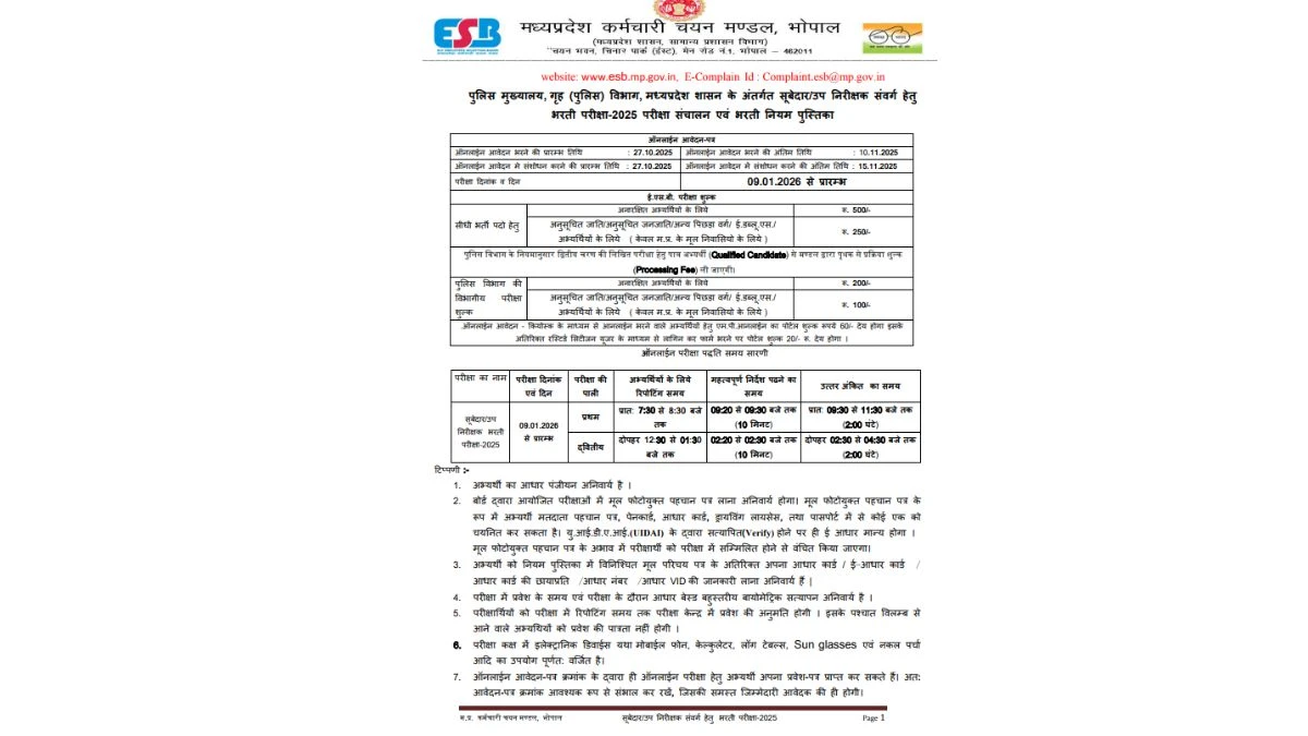 - MPESB MP Police Recruitment 2025 – 500 Posts, Online Form Out at esb.mp.gov.in