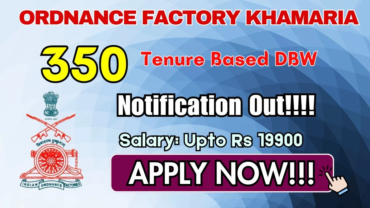 - Ordnance Factory Khamaria Tenure Based DBW Recruitment 2026 Out - Apply Offline 350 Posts