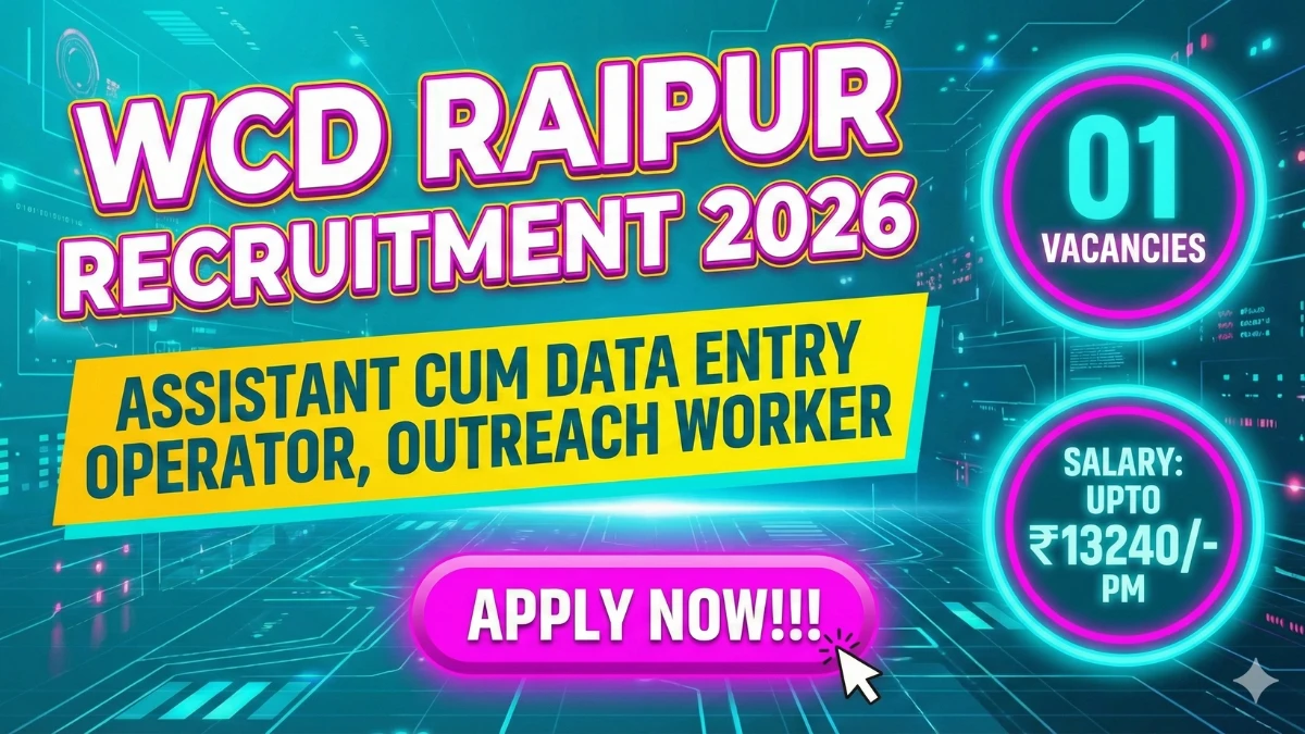 Tags: WCD Raipur Recruitment 2026, WCD Raipur Assistant cum Data Entry Operator, Outreach Worker Recruitment 2026, WCD Raipur Jobs 2026, WCD Raipur Recruitment 2026